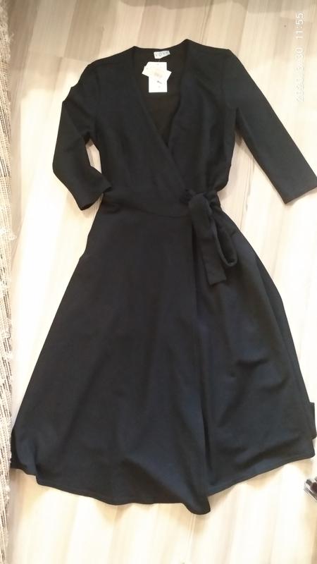 Платье из плотного трикотажа на запах, тёмно-синего цвета. Длина платья 116см, на ПОГ до 50 см