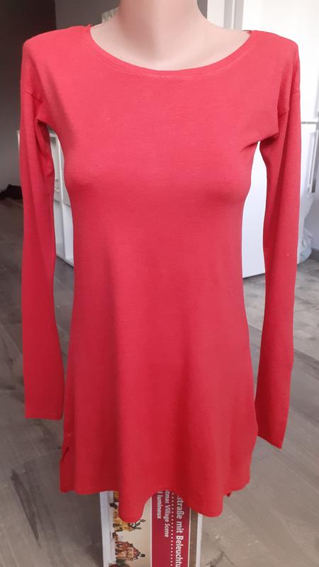 Коралове платьюшко ,можна як туніка.Мягусенькое,нічого зайвого,зад трошки довше переду.Заміри: довжина 77, ширина під пахвами 42,тягнеться в грудях,за рахунок еластану,плечі трохи напускные 45, довжина рукава від плеча 58