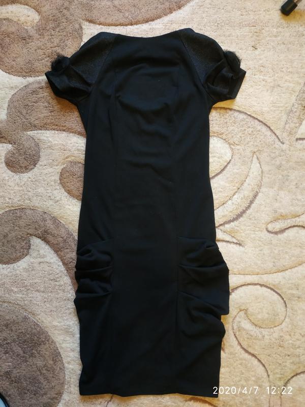 сукня гарно лягає по фігурі, на стегнах складки, ззаду розріз. Застібається ззаду на потайний замок. довжина - 95 см, пог - 37.
