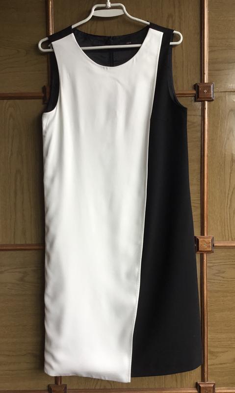 Елегантне щільне плаття на підкладці, добре тримає форму, білий нахлест спереду, ззаду на блискавці. ПОГ-44, ДІ - 94