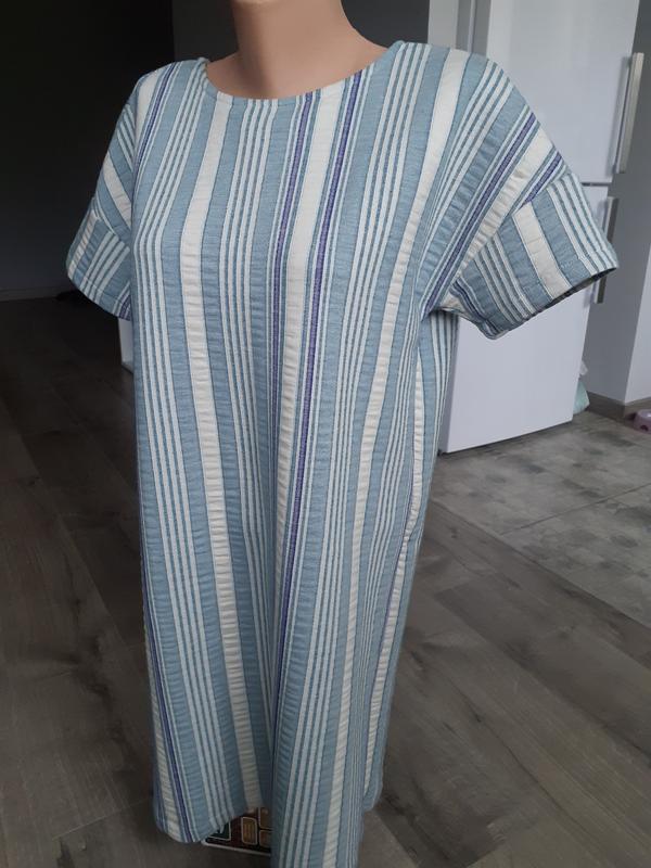 Оригінальна сукня з вирізом на спині і гудзичками.Повненька,м'яка тканина.Вільний крій.Заміри: довжина 85, ширина під пахвами 52-55, плечі напускные 62.Розмір М/Л