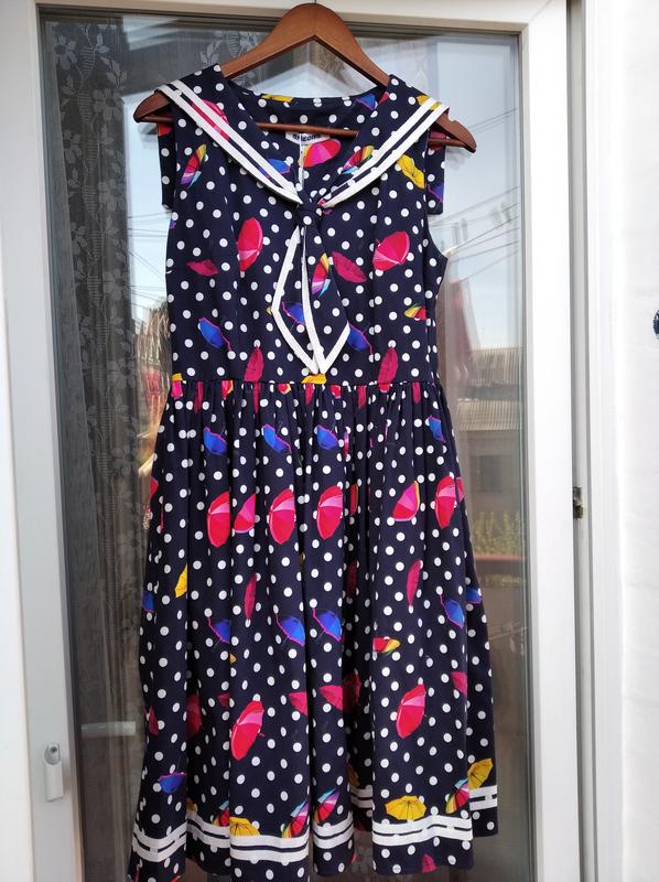 Яскраве плаття в вінтажному стилі з спідницею сонце-кльош і матроской. Тканина сукні трохи тягнеться. Плаття нове від виробника Arizona. Підійде на розмір m/l. Розміри: ПОГ 46 см ПОТ 40 см Довжина 98 см