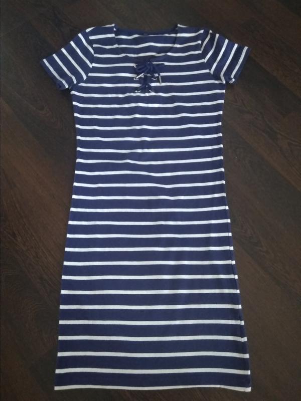 Нове трикотажні плаття в смужку Спереду шнурівка Довжина - 94см Ширина від пахви до пахви - 41см Стегна - 38см Тканина добре тягнеться