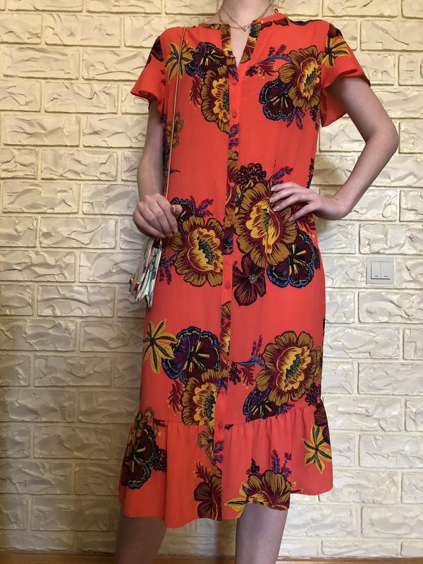 Сукня - халат, в ідеальному стані без плям і подряпин без каташек! Є пояс . Спереду планочка на гудзиках. Довжина 110см. Груди 106см. Стегна 113см. Спина 39,5 див.