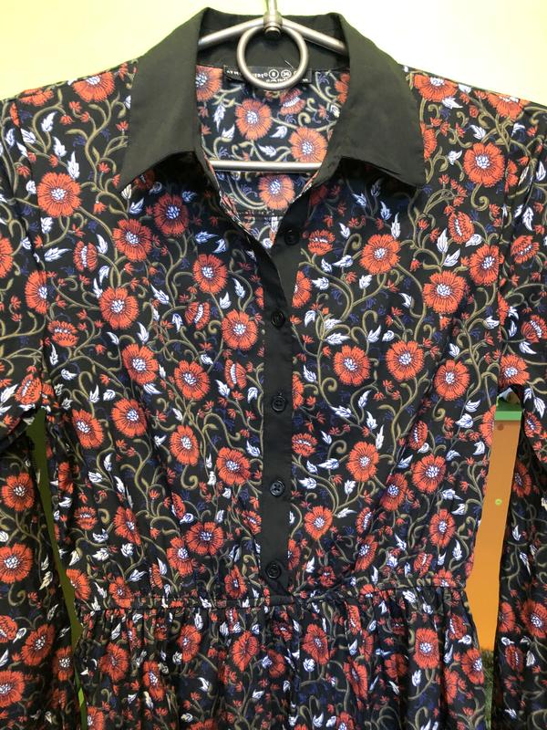 Красиве легке плаття міді ATMOSPHERE . Талія на резинці. З манжетами і комірцем з оздоблювальної чорної тканини.Рукав можна підкачувати. Стильне! Приємних покупок!