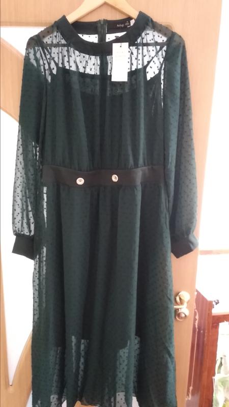 В одном экземпляре, не подошёл размер. Платье двойка со вставками и декоративными пуговицами на талии, французская длинна Ткань: верхнее платье - шифон-горох со вставками из французского трикотажа, нижнее платье - французкий трикотаж.
