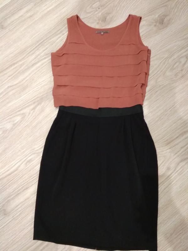 Класне плаття по фігурі. Пошиття цікавий, верх пишний, здається, що це блузон і спідниця.