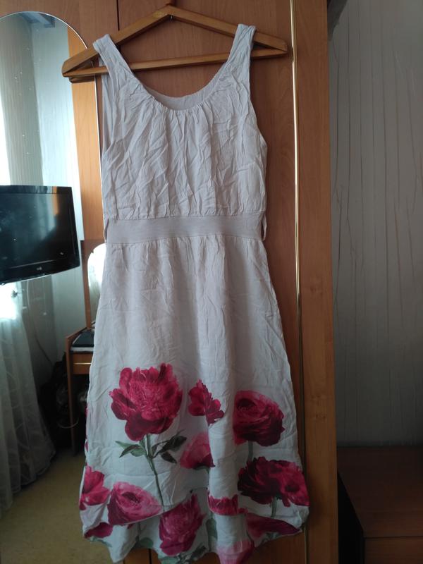 Трикотажне плаття в красивий яскравий принт. Довжина 39 перед,зад 104. Пог-35,пот-34,пройма 23. Сукня жатка, добре тягнеться. Розмір s або м. На мене велике, можна вставити пояс.