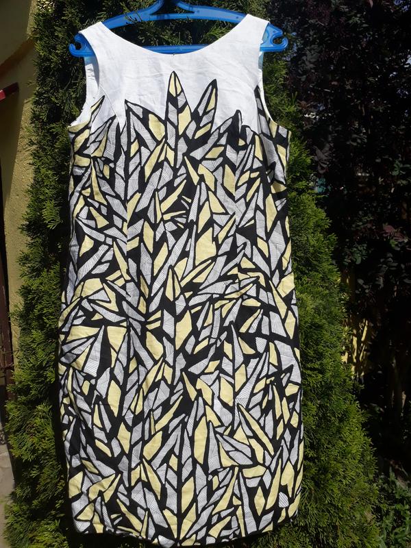 Продам приталену сукню-футляр. Стан на 5. Тканина натуральна, геометричний принт. На спинці на замку, є підкладка. Бірка зрізана. Розмір орієнтовно М, S. Дивіться інші мої оголошення:)