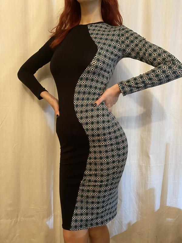 Витончене облягаючу сукню міді, зі вставкою з орнаменту на всю довжину