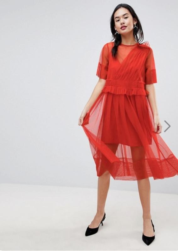 Стильное оригинальное платье asos. Красный фатин, в комплекте мини-платье -- подкладка.