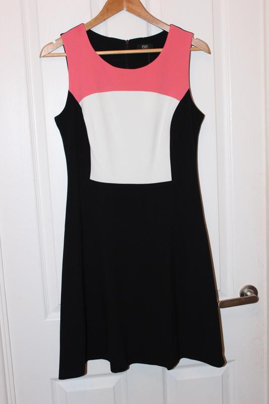 сукня з підкладкою,розлоге ,низ - розкльошена спідниця,модель візуально стрункішою за рахунок планок з боків довжина 98 довжина до талії 43 ПОГ 53 ПІТ 47 ПОБІДИ 57 ПО низу 72 плечі 39 виміри в складеному вигляді підкладці,річ б/у