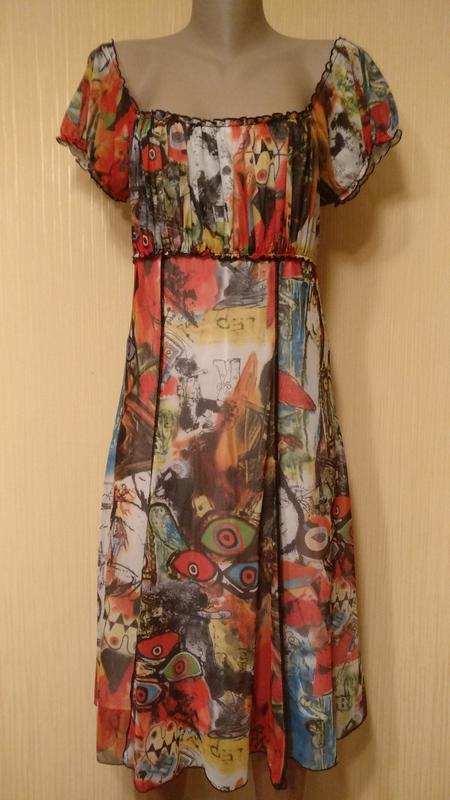 яскраве трикотажне в маленьку сіточку на.трикотажній підкладці,ліф призборен,Д вироби-105см.ПОГ-45-48, торг доречний