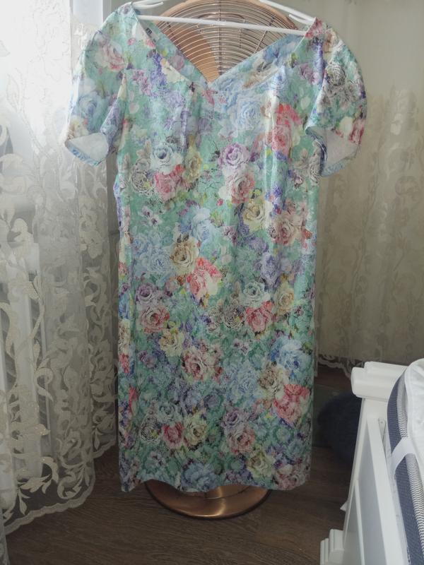 Літнє плаття зауженое до низу , з трохи оголеної спиною. Розмір 50.