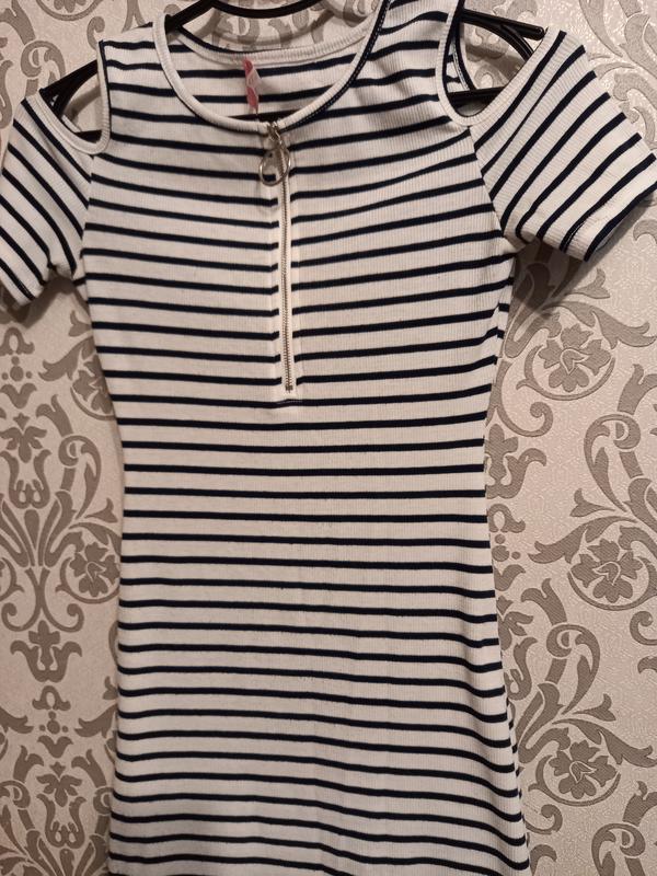 Плаття в смужку з замком на декольте.Стан відмінний.Сідати по фігурі