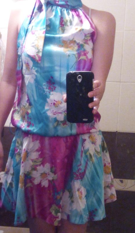 Платье яркое атласное, цветочное