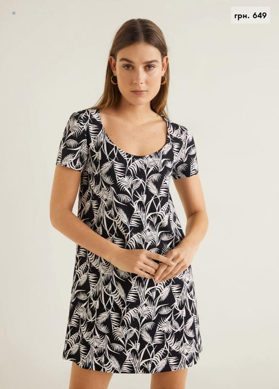 Платье Mango с модным принтом, отличный выбор для повседневного гардероба. Размер S, подойдёт и на M. ПОГ 44 см, ПОБ 51 см, длина по спинке 86 см