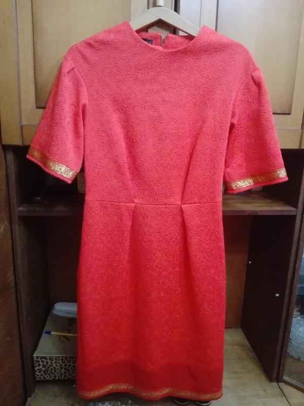 Плаття коралове тканину з малюнком,внизу сама додала з шифону смужку.