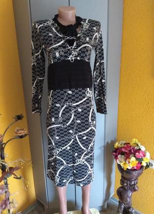 Трикотажне плаття в діловому стилі, довжина 111 см, плечі 40-42 см, довжина рукава 60 см, ПОГ 43-50 см, ПОТ 38-45 см, ПОБІДИ 40-50 див. Дивіться також інші мої оголошення, багато хороших фірмових речей оновлення майже кожен день адекватні ціни підписуйтесь щоб першими дізнаватися про новинки.