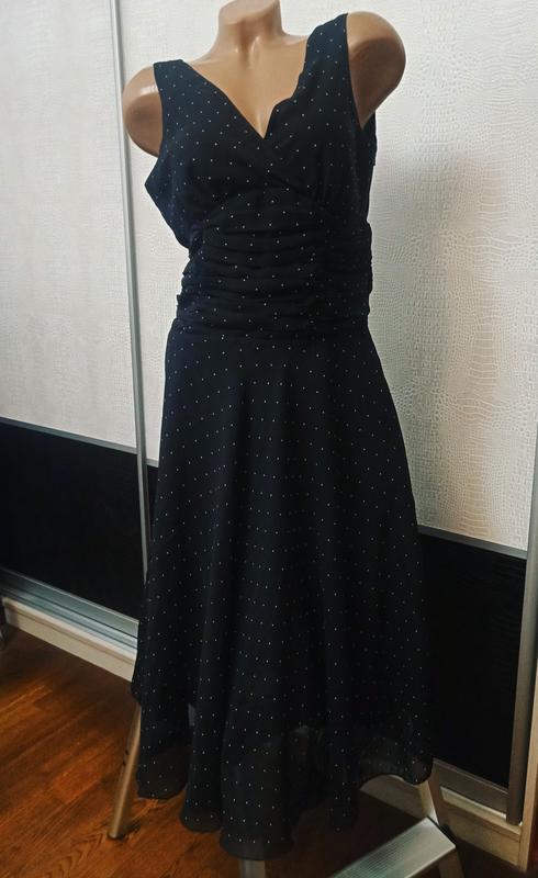 Прекрасное воздушное платье в мелкий горошек Principles. UK 12 46 р Подкладка по всему платью На боку молния Под грудью широкий пояс до талии. Длина от плеча 117см Ширина между подмышками 46-47см Под грудью 39см Пот 39-40см Поб по подъюбнику 55см