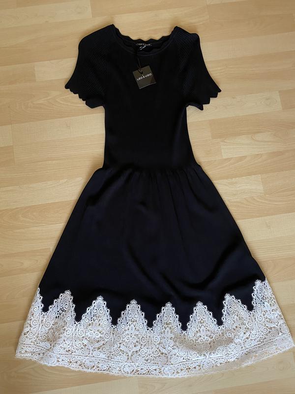 Элегантнейшее сукняфранцузького бренду,дуже якісний трикотаж,розкішне мереживо,ідеально в посадці!Розмір вказаний 2,підійде на с-м.Довжина 208,все інше розтягується,як потрібно.Фото на моделі по запиту.