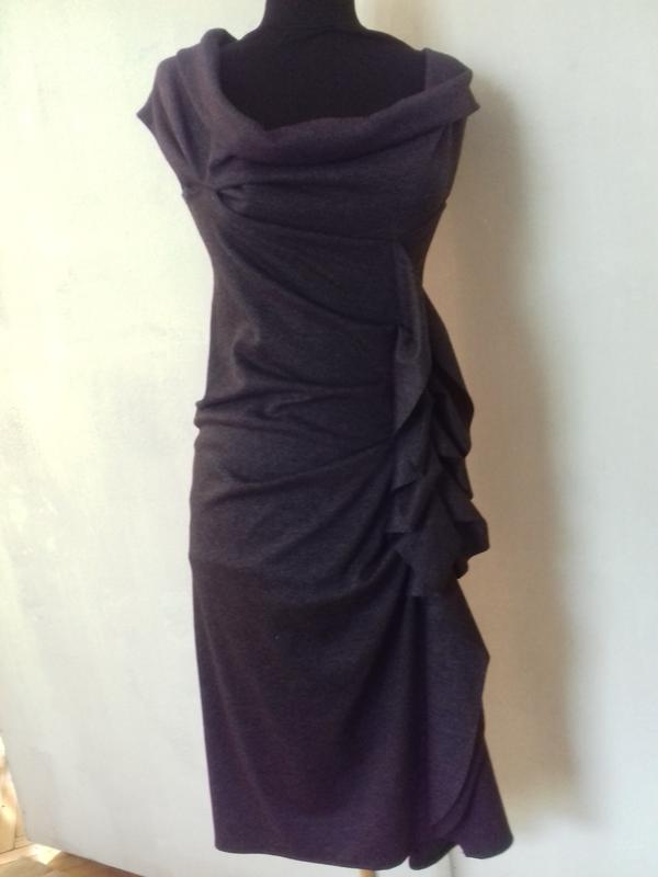 чудове плаття.Розмір С..довжина 91см.з трохи щільного трикотажу(трохи тягне)тягнеться .на Ог 88..91см.на Стегна 92...95см.Колір чорного баклажана(камера не хоче передати колір)