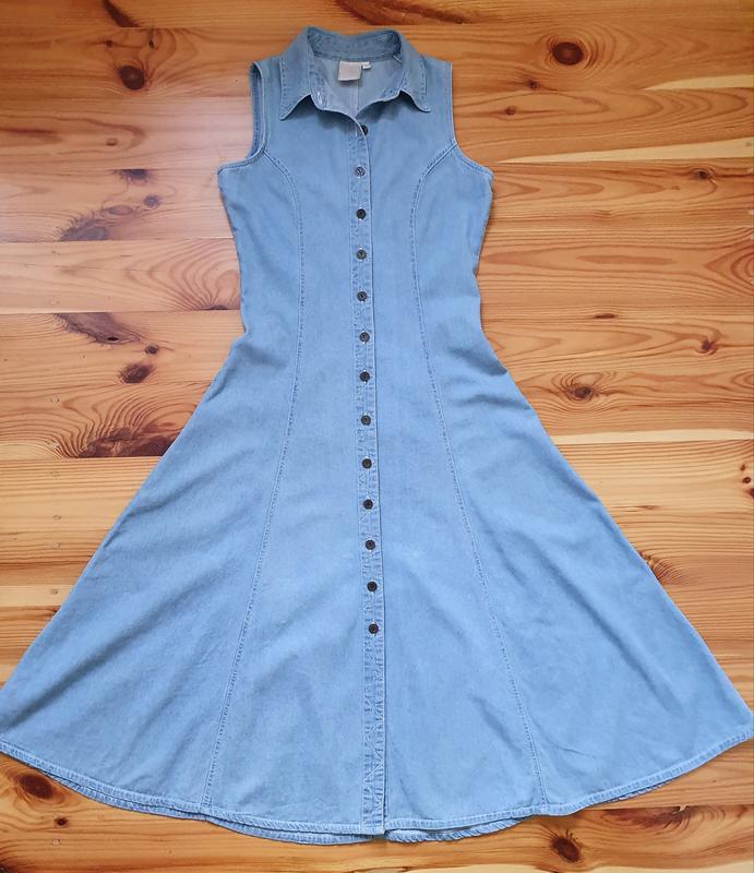 Довге джинсове сукню полусолнце на гудзиках. Ог 47см, від 40см, про 54см, довжина 125см. Склад: 100% cotton легкий. На плаття є кілька цяток (в області 3й гудзики від низу)