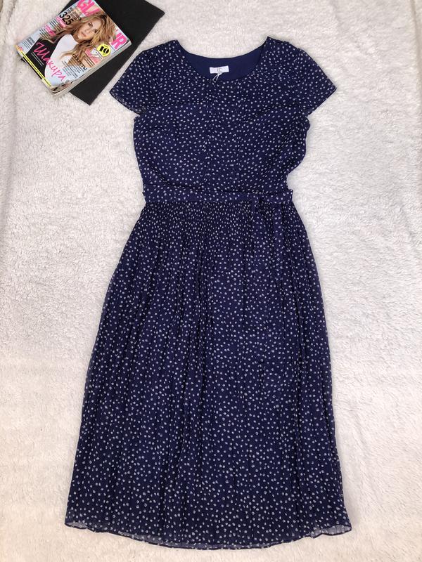 Сукня довжини міді , актуального фасону. Принт горошок. Спідниця плісе. Талія на паску. Збоку змійка, на підкладці. Нове. Заміри Довжина-108 П. о. м-40 П. о. т-32{не тягнеться} Рукав-13