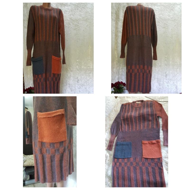 Предлагается современное теплое платье от итальянского бренда"GUNILLA PENTEN" в серо/ коричневых тонах.. Фасон современный , модный Красивое сочетание расцветки. На рукаве высокий манжет. Впереди 2 накладных кармана, плечи укреплены плотной лентой(не растянутся) С изнанки имеются подплечники на липучке(можно убрать кому не нравится) Платье хорошо тянется, не грубое на ощупь. На раз от 40 до 44 европейский. (см по замерам) Состояние прекрасное одето пару раз в помещении,( мне большое похудела) Состав: шерсть-3%,мохер -67 % полиамид Замеры изделия: Длина по спинке-108 см Плечи-44 см Рукав-65 см ПОГ-55 см ПОТ-51 см ПОБ-54 см Все замеры- в не растянутом состоянии См др мои обьявления Состав: шерсть-3%, мохер -67 % полиамид Доставка: Оплата на карту Привата с учетом банковских услуг Отправка ТОЛЬКО укр /новой почтой Все нюансі-до сделки возврат не предусмотрен Примерок нет
