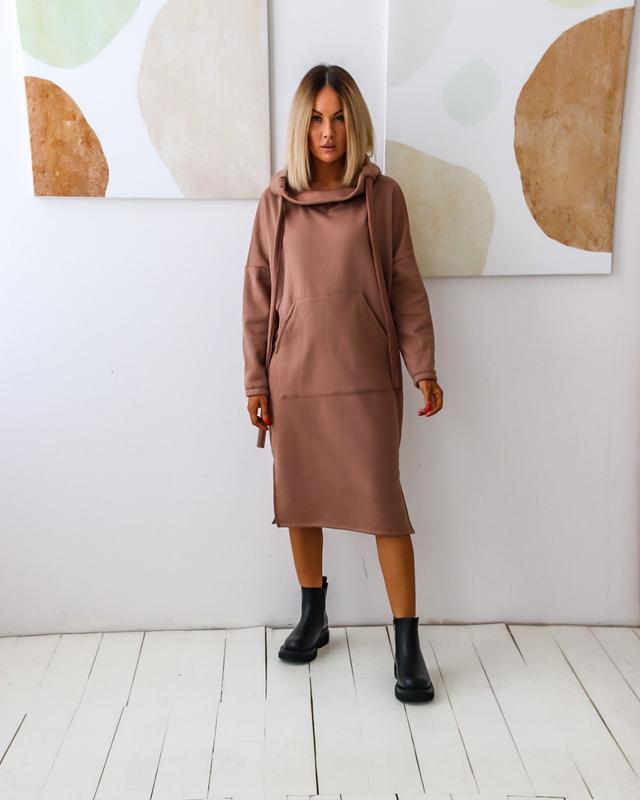 Тепле плаття модель №р15375 ціна-450 грн розмір- 1(42-44),2 (46-48) ціна - 480 грн розмір- 3(50-52),4 (54-56) тканина - трехнить з начосом колір - марсал ,чорний,хакі, беж