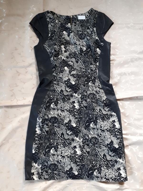 Дуже гарне плаття з підкладкою,з боків шкіряні вставки,змійка по всій спинці,є виточки на грудях,довжина 90см,ПОГ 47см,ПІТ 40см,ПОБ47см,кожзам трохи тягнеться