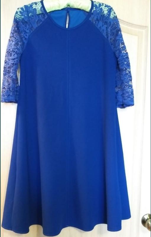 Продам сукню дуже гарного кольору електрик.Купувала в Москві, вільний пошиття.Рукав гіпюровий до локтика довгою.Довжина сукні по коліно.Без дірок,дефектів,плям.