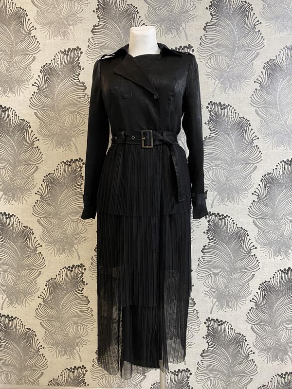 Чудове плаття, піджак від NÜ Denmark 🔥. Верх виконаний з щільної блискучої тканини, спідниця - з легкого прозорого полотна. Є підкладка завдовжки трохи вище коліна. Сукня илеально підкреслює декольте і талію. Виглядає справді розкішно.