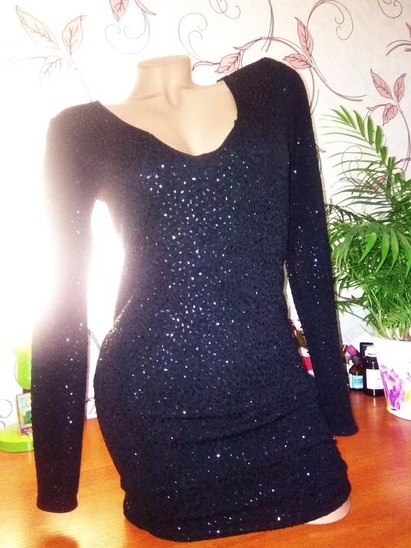 Дуже красиво сукню в паетках.Є підкладка,шикарних вирез на грудях,відмінно тягнеться розмір 44-46 заміри Довжина 80 див. груди 43см.талія 37см.стегна 43см.потягнеться на сантиметрів 5