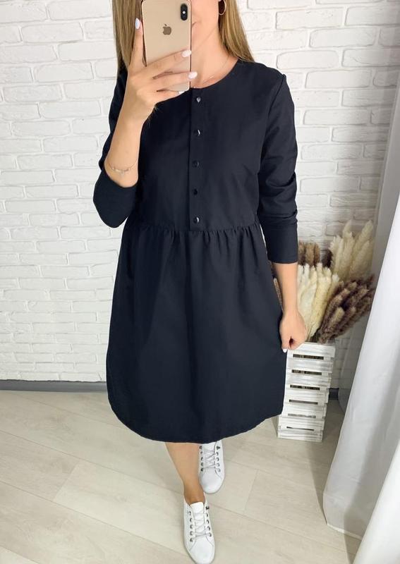 Сукня Арт 752 Тканина котон Туреччина Колір джинс чорний, фрез Розмір 42-44,46-48,50-52 Ціна 480 грн Сукня вільного крою, з кишенями у бокових швах, рукав довгий, фурнітура турецька!