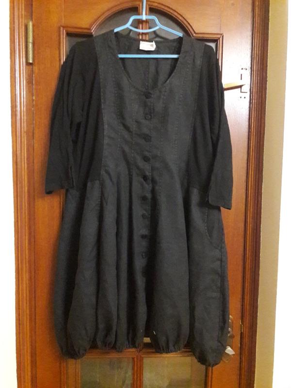 Платье 52 - 54 размеру на женщину ниже среднего роста. Лен и трикотаж. ПОГ 56 см, ширина юбки 100 см, внизу собрано резинкой.Длина 96 см.