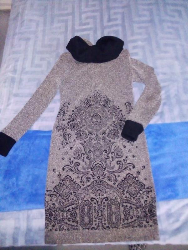 плаття чорно-сірого кольору з оригінальним візерунком, розмір 36, довжина 90 см, рукав 60 см.