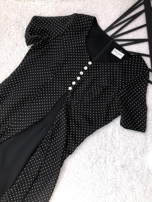 Стильна і оригінальна модель сукні . Завжди актуальний принт. Рівний крій, зверху шифон в горошок, гудзики виглядають оригінально. Виробник Лондон . Нове. Є пломба від бирки. Заміри П. о. р-49 П. о. т-43 П. о. б-51 Довжина-91