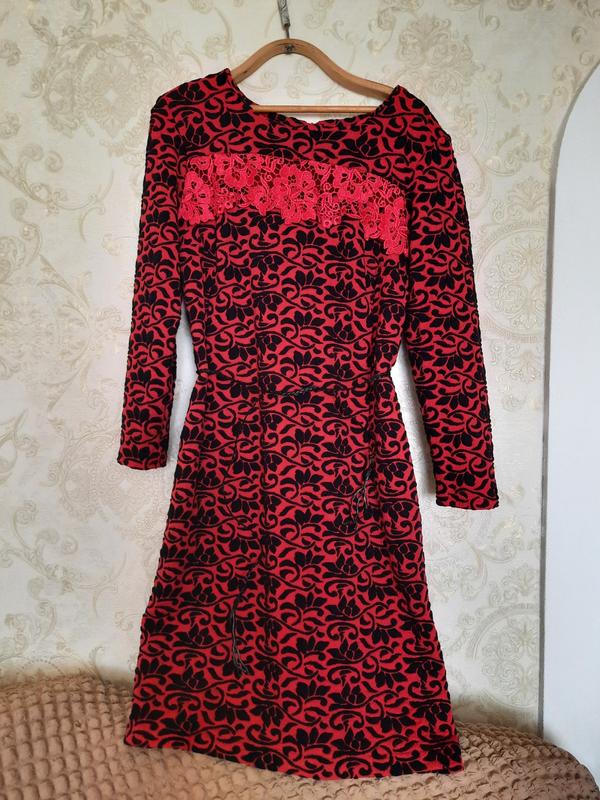 Гарна сукня з ажурною вставкою ПОГ-53, ПОТ-50, ПОБІДИ-57, довжина виробу-96, довжина рукава-59, шліца-18