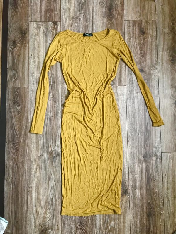 Тонка трикотажна сукня красивого жовто-гірчичного кольору, рр підійде на S і маленьку М Стан нової Довжина від плеча 110см Рукав від плеча 60 см Груди 40 см Талія 34,5 см Стегна 40 см Тягнеться ще на сантиментів 10-15