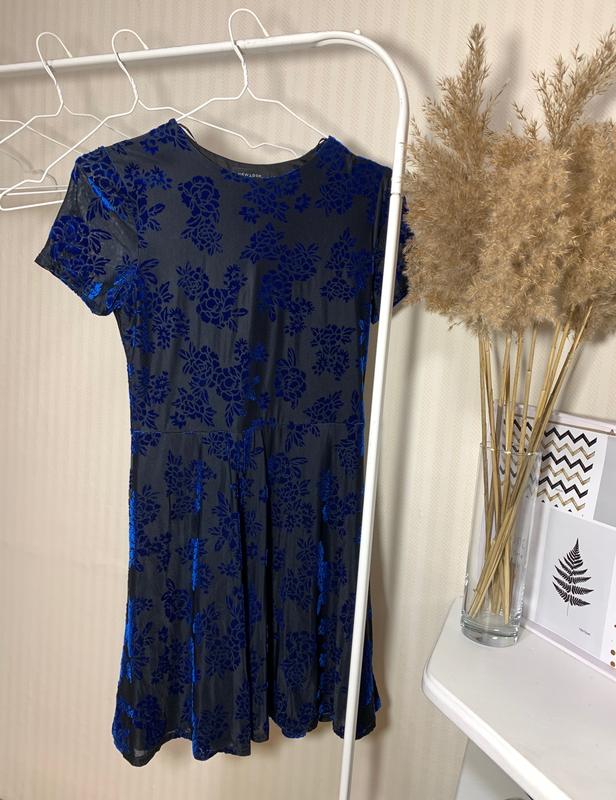 Приталенный пошив платья. Фирма New Look. На платье бархатные цветы, очень красиво переливаются на свету🥰 Размер S-M