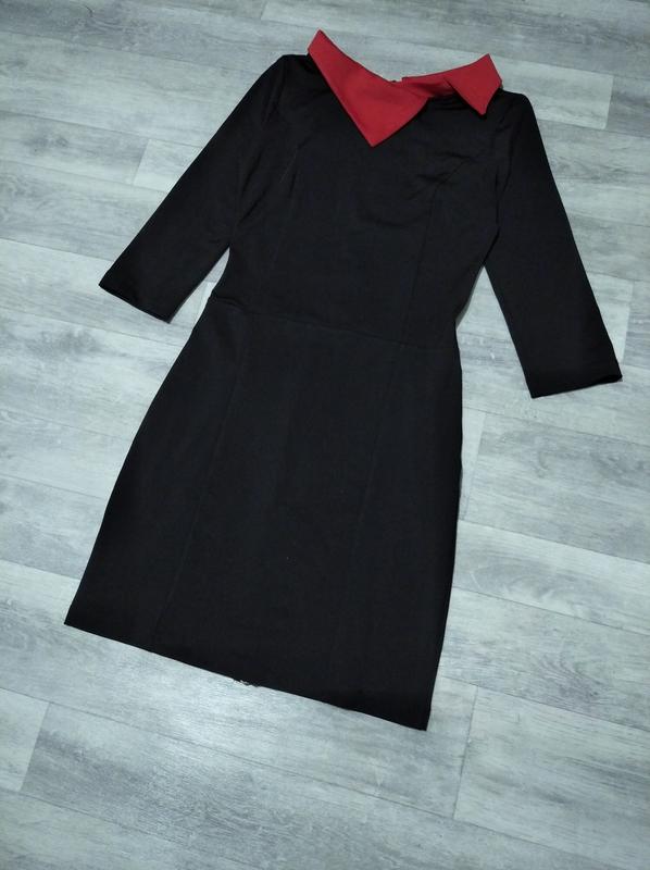 Платье чёрное с красным воротом. Замеры: пог 41 см, рукав 45 см, пот 34 см, поб 40,5 см, длина по спине 84 см, плечи 35 см.
