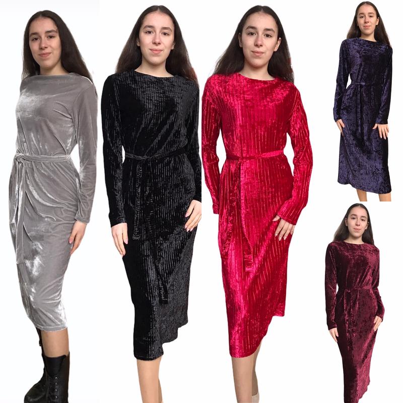 Дуже гарні оксамитові сукні в кольорах: чорний, червоний, фіолетовий, бордовий, рожевий. У розмірах: Xs / S, M / L Xs / s: Пог 48, побіди 50, довжина 117см М /l: пог 51, побіди 55, довжина 118 див.