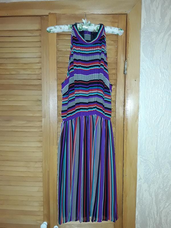 Модне плаття в різнокольорову смужку,довжина сукні 91см,груди напівобхват 44см,пояс напівобхват 30см,пояс на гумки в нерозтягнутому вигляді,довжина спідниці 52см.Виріз під пахвами великий,плаття застібається на шиї.Стан нового.Остаточна ціна 200гривен.