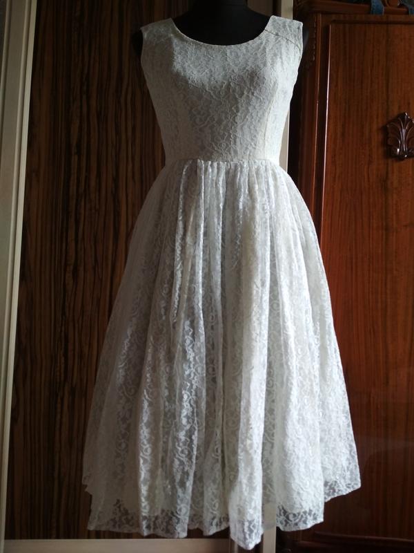 шикарне,вінтажну,ажурне плаття.біле а підкладка ніжно бежева.застегиваетса на блискавку з заде.довжина від плеча 103 див. обхват талії 69см.спідниця пишна.