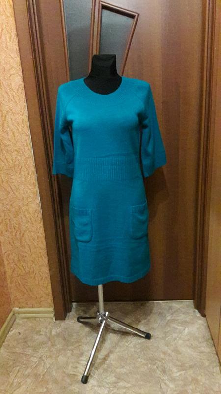 Сукня з щільного трикотажу бірюзового кольору. Добре поєднується з білою сорочкою.