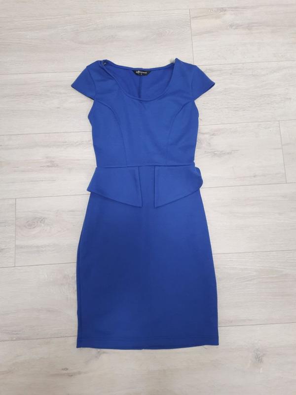 Красивое платье насыщено синего цвета, трикотаж тянется, садится чётко по фигуре, можна под него тонкий гольф одевать. Подойдет в офис, на учебу. Размер указан S, наш 42, без дефектов!