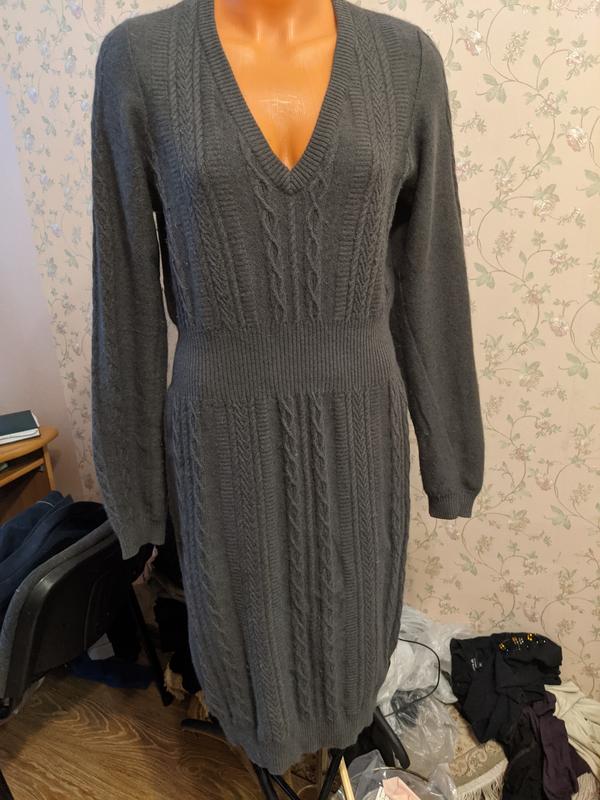 Мягксенькое,теплое платье в отличном состоянии, без следов носка.Очень приятный, нежный, красивый цвет,серый с темно зеленым бледным, выглядывает больше серым с подтоном зеленой оливки бледной.Взя осень модно и статусно.