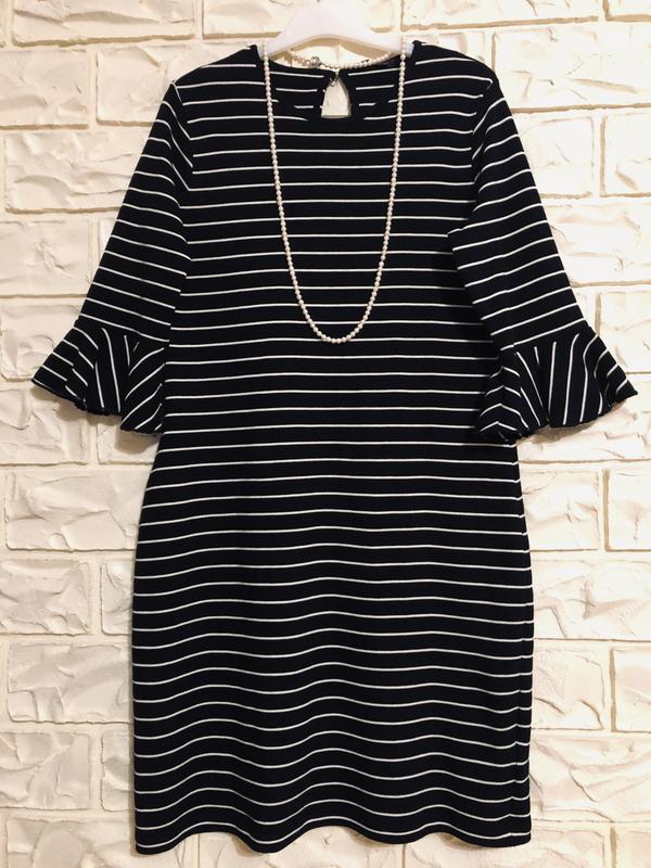 Сукня в ідеальному стані, без плям і подряпин, без катишек! Тканина тягнеться. Середньої щільності. Красиво виглядає на фігурці! У гарному якості 98%-коттон . Довжина 94см.Стегна 106см. Талія 88см. Груди 100. Спина 36см. Від плеча до плечу39см.