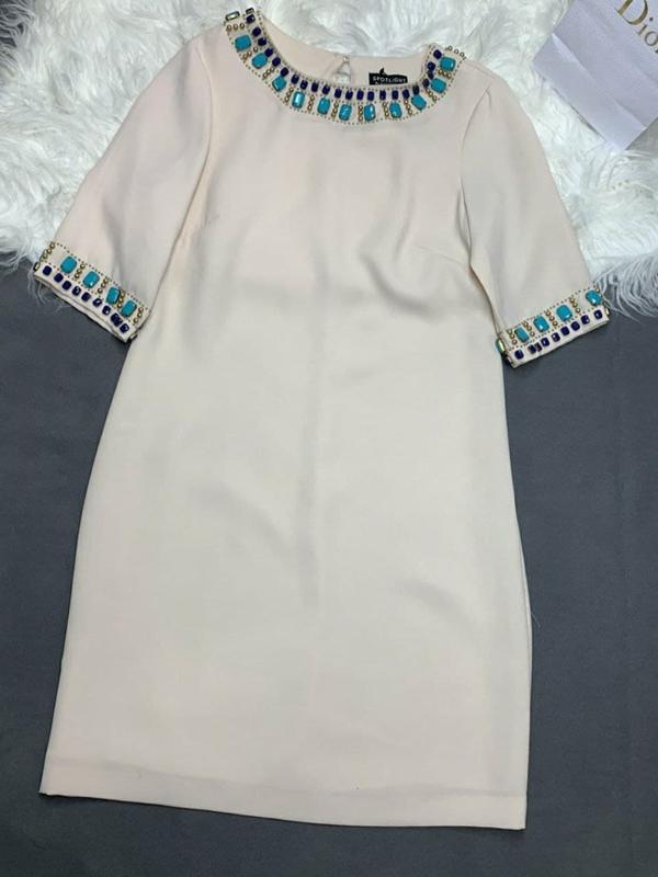 Елегантне жіноче плаття з камінням ніжного світлого кольору. Відмінно підійде для ділової вечері або вечірнього виходу. Розмір 10 (36-38)